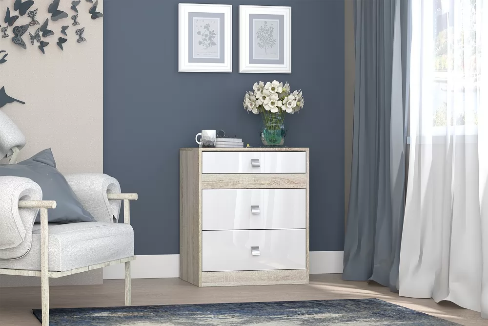 • Задние стенки и дно ящиков комода выполнены из ДВП белого цвета.