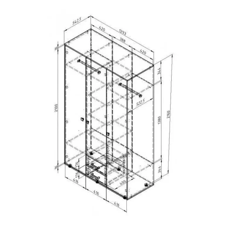 *Размеры (ВхШхГ), мм:2160х1300х550 мм