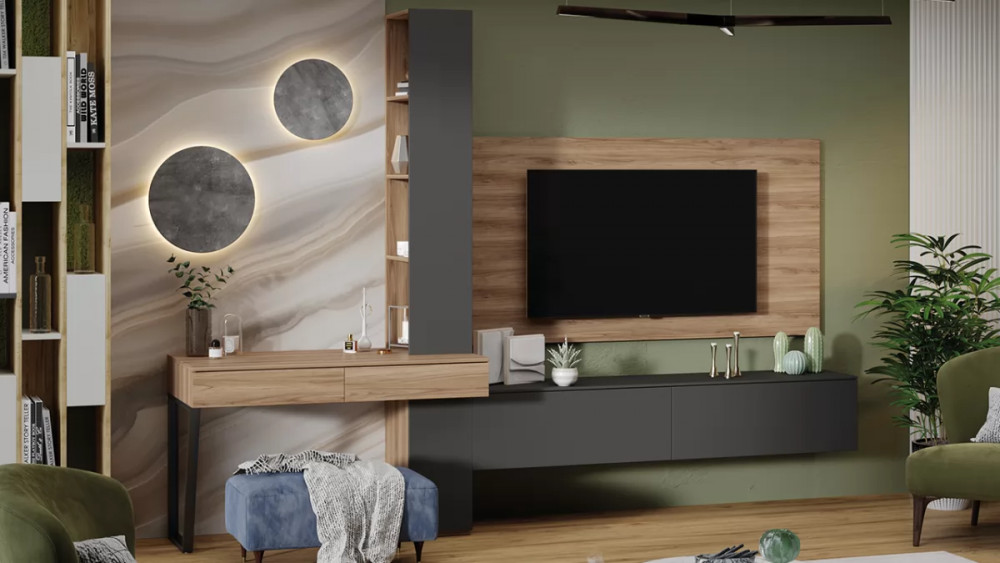 Гостиная «Порто» №8 Яблоня Беллуно, Графит софт в Пангоды