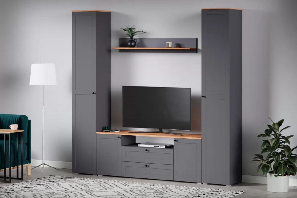 Доступна в двух цветовых решениях – белый/графит в сочетании с теплым древесным декором.