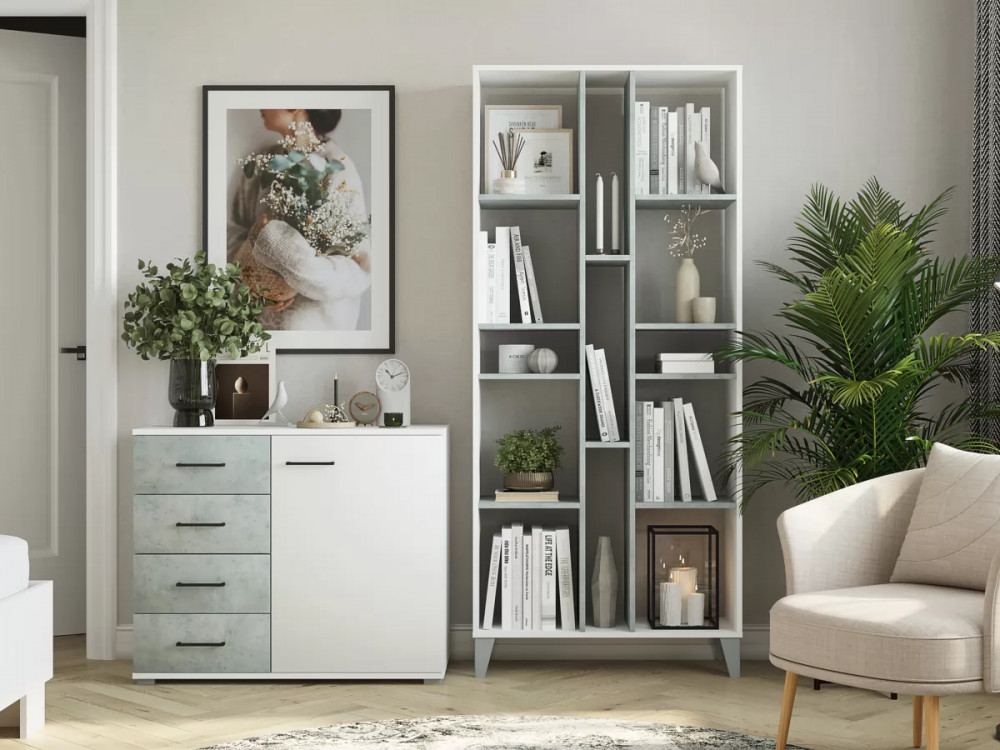 Стеллаж с комодом Asti и Nova Белый-Бетон в Пангоды