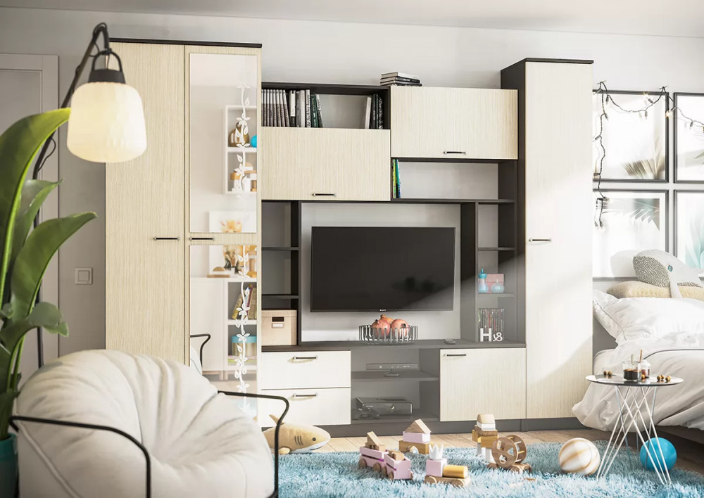 - Ниша под ТВ: 1000х800 мм, для моделей телевизоров с диагональю до 43"
