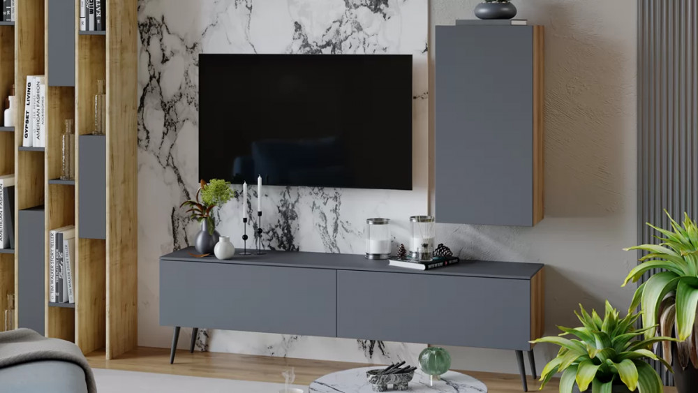 Гостиная «Порто» №3 Яблоня Беллуно, Графит софт в Пангоды