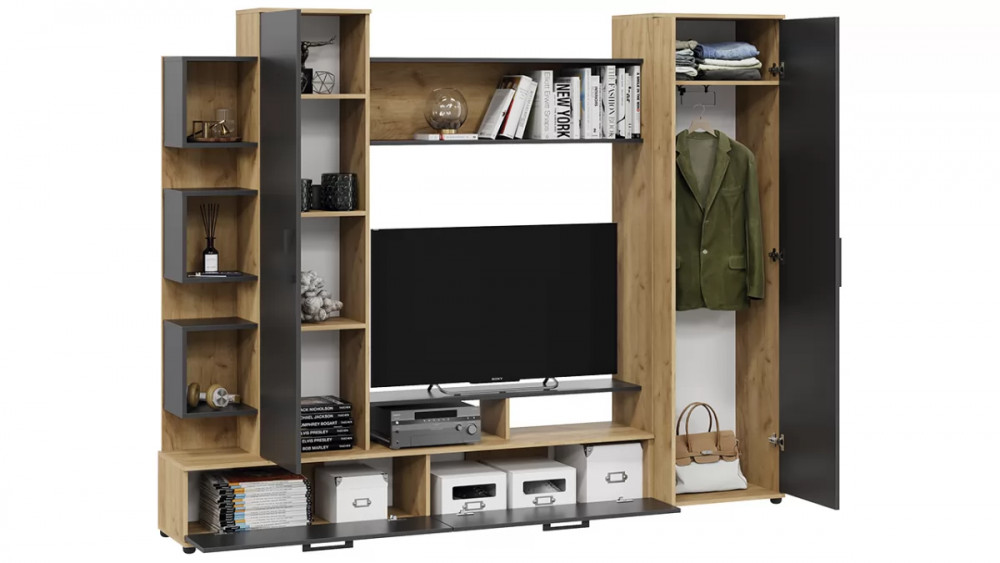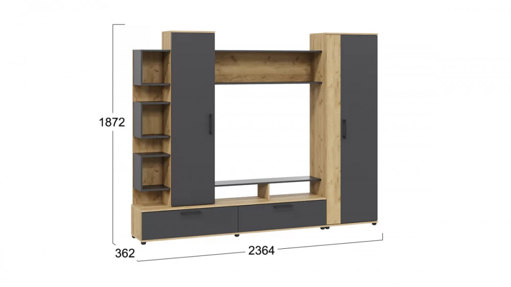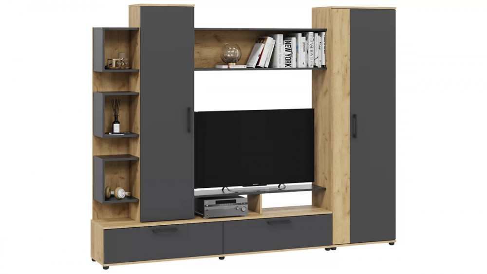Стенка «Дакота» Дуб Крафт золотой, Антрацит в Пангоды