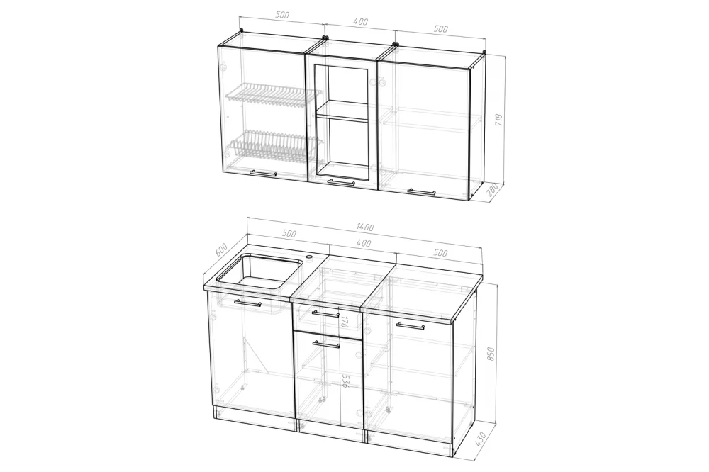 | *Ширина гарнитура | 1400 мм |