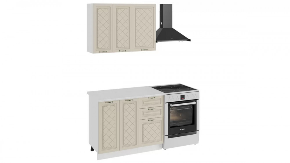 Кухонный гарнитур «Бьянка» длиной 150 см Дуб крафт золотой/Дуб ваниль