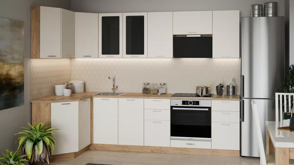 Кухонный гарнитур «Габриэлла» длиной 200 см Дуб крафт золотой/Сноу/Муссон
