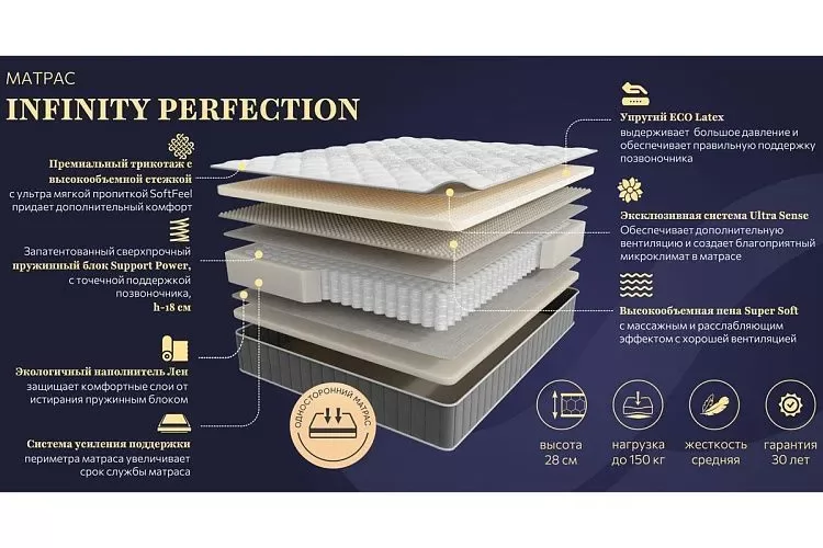 Матрас INFINITY PERFECTION 900*2000мм (Эколатекс/пена/лен, ср. жесткий, h28см)