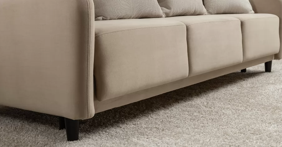 Объемные подушки обеспечивают комфортный отдых. В комплекте 5 двусторонних приспинных подушек и 2 декоративные подушки-думки в ткани букле. Надежный механизм трансформации и ровное спальное место обеспечивают полноценный сон.