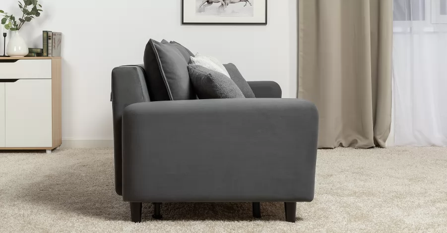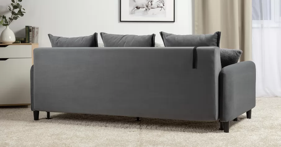 Объемные подушки обеспечивают комфортный отдых. В комплекте 5 двусторонних приспинных подушек и 2 декоративные подушки-думки в ткани букле. Надежный механизм трансформации и ровное спальное место обеспечивают полноценный сон.