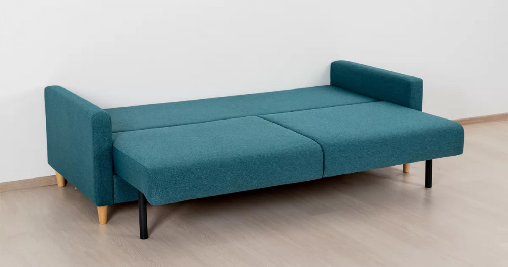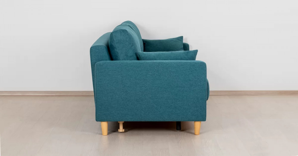 Дилан Диван-кровать арт. ТД 422Габаритысложенный (Д x Г х В, мм): 2170 x 960 x 880разложенный (Д x Г х В, мм): 2170 x 1370 x 620спальное место (Д x Ш, мм): 1910 x 1370высота посадки (мм): 460глубина сиденья (мм): 570высота спинки (мм): 420высота подлкотника от сиденья (мм): 160максимально допустимая нагрузка: 80 кг на одно посадочное место, 100 кг на одно спальное местоМеханизм трансформацииЕврокнижка с механизмом раскладки «тик-так»Бельевой ящикестьс перегородкой по центру (2 отделения)размер отделения (Д x Ш, мм): 786 x 688 x 120Материалыосновная ткань: Лаунж (шенилл) / Сага (рогожка)выполняется в тканях: Сага океан (темно-зеленый)каркас: фанера деревянный брус ДСП ДВП ЛДСП ДВПооснование матраса: ППУ на блоке плоских пружин «змейка»приспинные подушки, шт: 2декоративные подушки, шт: 2наполнитель подушек: полиэфирное волокно «шарики»материал опор: лакированное деревоцвет опор: бежевыйНазначениев гостиную в гостевую комнату в кабинетТребуется ли сборкадаУпаковкаколичество коробок, шт: 1общий вес с упаковкой, кг: 80Гарантия: 18 месяцев