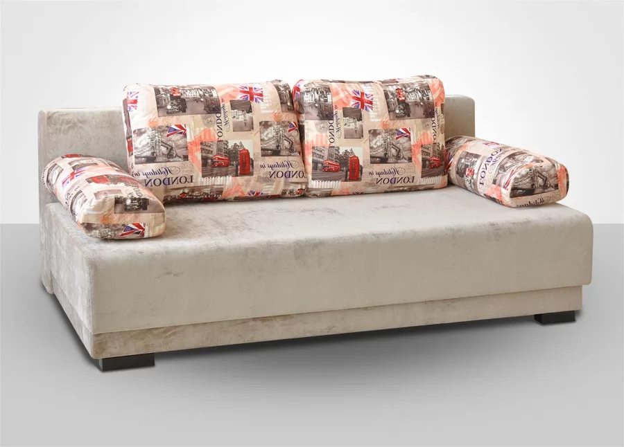 "Комбо 1" - прямой диван в современном стиле с валиками вместо подлокотников и с мягкими подспинными подушками. Основание дивана и подушки могут быть выполнены в контрастных цветах. Диван раскладывается в двуспальную кровать, механизм трансформации "Еврокнижка".