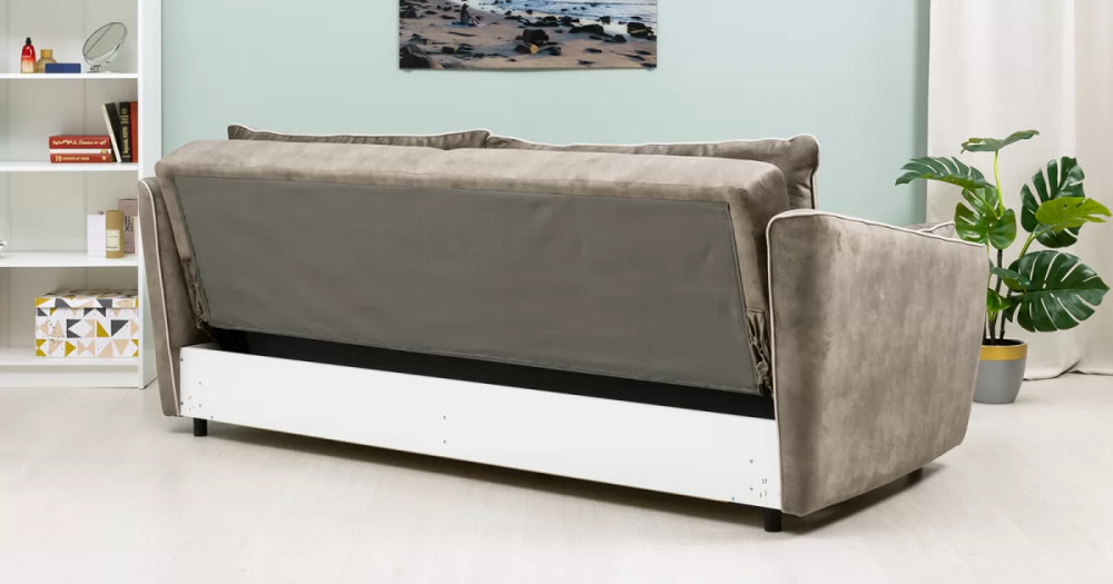Габаритысложенный (Д x Г х В, мм): -2260 x 1090 x 920разложенный (Д x Г х В, мм): -2260 x 1340 x 750спальное место (Д x Ш, мм): -1980 x 1340высота посадки (мм): -445глубина сиденья (мм): -600высота спинки (мм): -560высота подлокотника от сиденья (мм): -150-300максимально допустимая нагрузка: -240 кг на диванМеханизм трансформации-Книжка с 0 стенойБельевой ящик-есть с перегородкой по центру (2 отделения)размер отделения (Д x Ш, мм): - 890 x 840 x 140Материалыосновная ткань: Greta (велюр)выполняется в тканях: Greta Stone (серо-коричневый)/Greta Bone (слоновая кость)каркас: фанера-деревянный брус