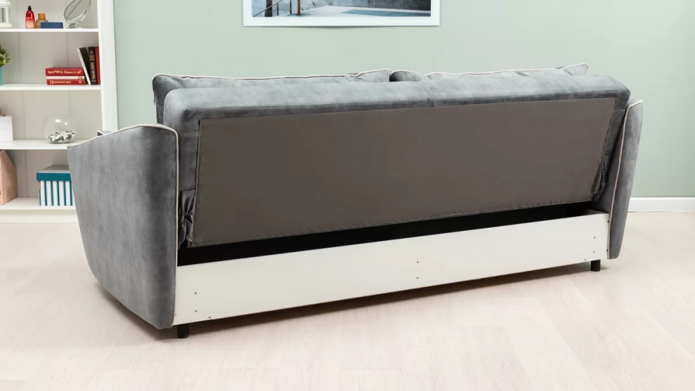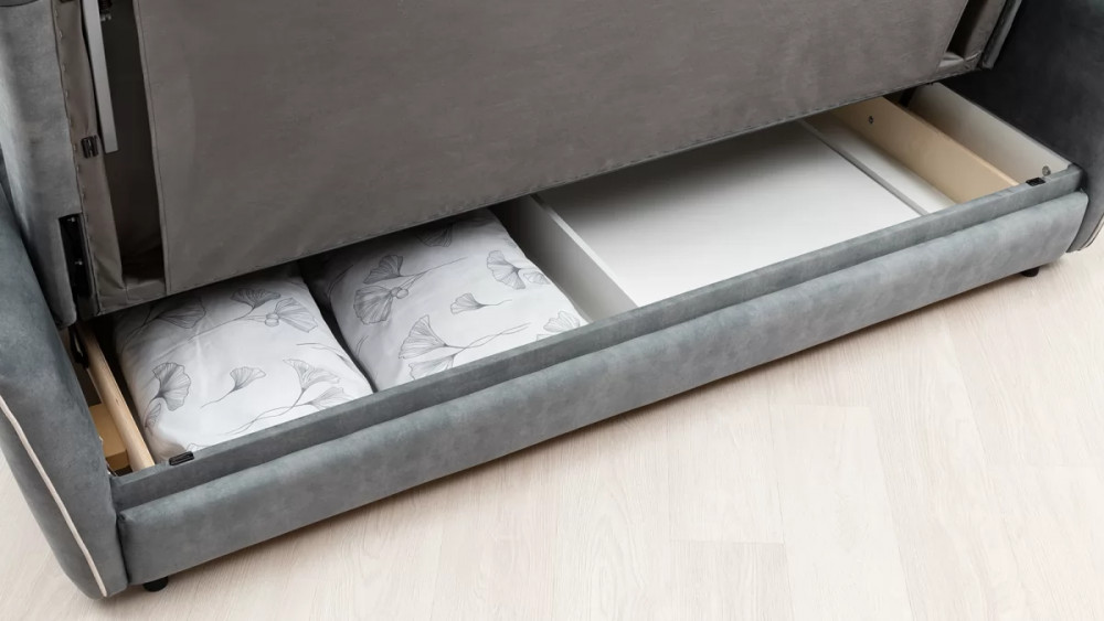 Габаритысложенный (Д x Г х В, мм): -2260 x 1090 x 920разложенный (Д x Г х В, мм): -2260 x 1340 x 750спальное место (Д x Ш, мм): -1980 x 1340высота посадки (мм): -445глубина сиденья (мм): -600высота спинки (мм): -560высота подлокотника от сиденья (мм): -150-300максимально допустимая нагрузка: -240 кг на диванМеханизм трансформации-Книжка с 0 стенойБельевой ящик-есть с перегородкой по центру (2 отделения)размер отделения (Д x Ш, мм): - 890 x 840 x 140Материалыосновная ткань: Greta (велюр)выполняется в тканях: Greta Grafit (серый)/Greta Bone (слоновая кость)каркас: фанера-деревянный брус