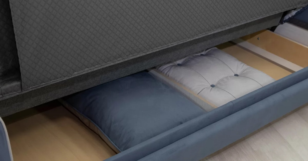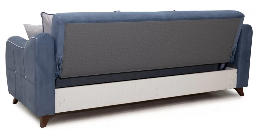 Френсис Диван-кровать арт. ТД 263Габаритысложенный (Д x Г х В, мм): 2280 x 1030 x 900спальное место (Д x Ш, мм): 1950 x 1310высота посадки (мм): 480глубина сиденья (мм): 570максимально допустимая нагрузка: 80 кг на одно посадочное место, 100 кг на одно спальное местоМеханизм трансформацииКнижка с 0 стенойБельевой ящикестьс перегородкой по центру (2 отделения)размер отделения (Д x Ш, мм):  890 x 840 x 200Варианты исполнения5 артикуловсочетание тканей только как на фотоМатериалыосновная ткань: Амиго (велюр)выполняется в тканях: Амиго нэви (серо-синий), Амиго эш (светло-серый)каркас: фанера