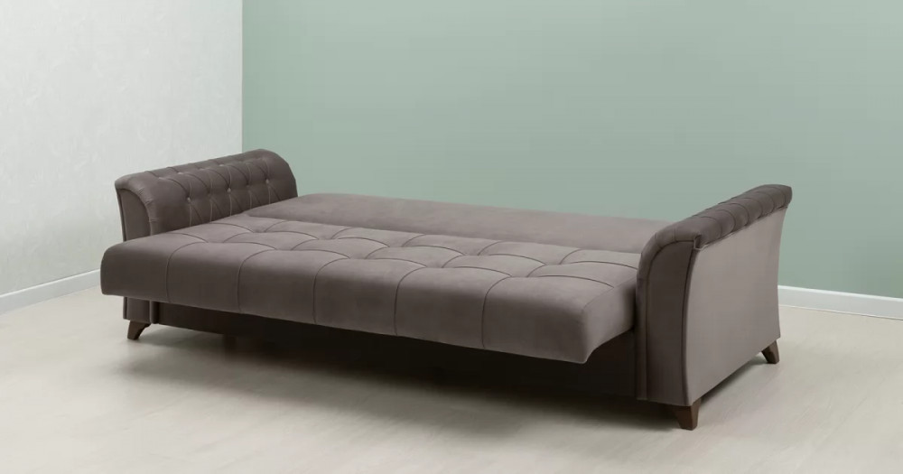 Габаритысложенный (Д x Г х В, мм): 2450 x 1060 x 890спальное место (Д x Ш, мм): 1950 x 1310высота посадки (мм): 460глубина сиденья (мм): 540максимально допустимая нагрузка: 80 кг на одно посадочное место, 100 кг на одно спальное местоМеханизм трансформации-Книжка с 0 стенойБельевой ящик-есть  перегородкой по центру (2 отделения)размер отделения (Д x Ш, мм): 890 x 840 x 200каркас: фанерадеревянный брус