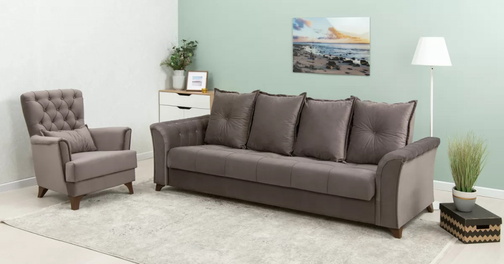 Элегантные и комфортные диван-кровать и кресло в стиле «неоклассика» удачно впишутся как в классический, так и в современный интерьер.