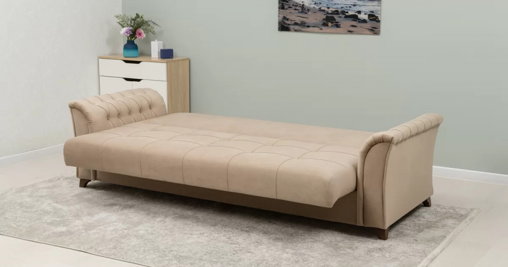 Габаритысложенный (Д x Г х В, мм): 2450 x 1060 x 890спальное место (Д x Ш, мм): 1950 x 1310высота посадки (мм): 460глубина сиденья (мм): 540максимально допустимая нагрузка: 80 кг на одно посадочное место, 100 кг на одно спальное местоМеханизм трансформации-Книжка с 0 стенойБельевой ящик-есть  перегородкой по центру (2 отделения)размер отделения (Д x Ш, мм): 890 x 840 x 200каркас: фанерадеревянный брус