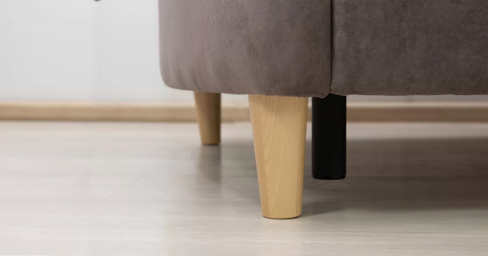 Комплект состоит из прямого и углового диванов, кресла для отдыха и пуфа.