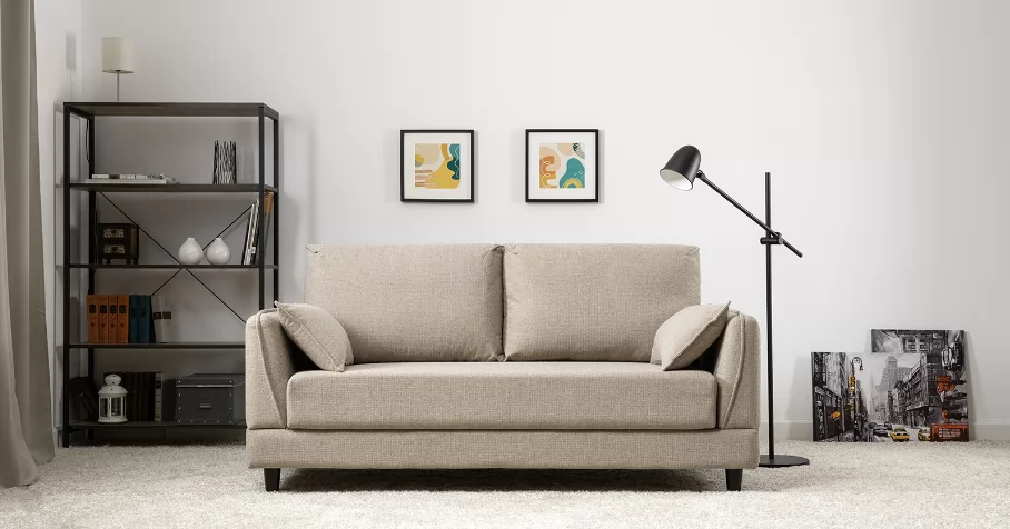 Лаконичный дизайн с деревянными ножками и узкими подлокотниками удачно дополнит не только интерьер гостиной, но и кабинета, и кухни. Кроме того, диван Макс позволяет организовать спальное место в ограниченном пространстве.