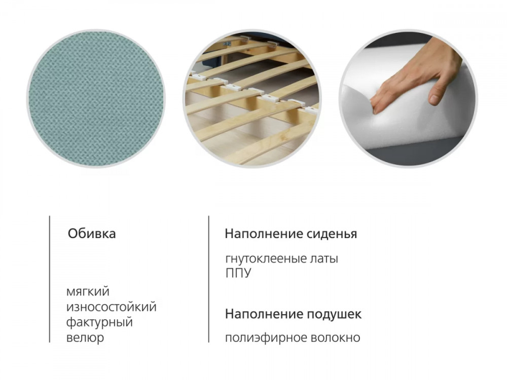 Габаритысложенный (Д x Г х В, мм): 1450 x 800 x 840разложенный (Д x Г х В, мм): 1450 x 2000 x 770спальное место (Д x Ш, мм): 1950 x 1200высота посадки (мм): 460глубина сиденья (мм): 650высота спинки (мм): 450высота подлокотника от сиденья (мм): 120максимально допустимая нагрузка: 80 кгМеханизм трансформацииВыкатной с гнутоклееными латамиБельевой ящикестьодно отделениеразмер отделения (Д x Ш, мм):  1100 x 628 x 100Варианты исполнения6 артикуловсочетание тканей только как на фотоМатериалыосновная ткань: Киви (велюр) / Макс (велюр)выполняется в тканях: Киви 54 велюр (ментоловый)каркас: