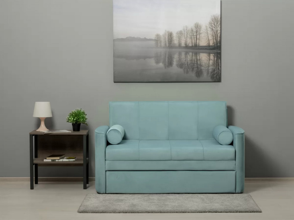 Диван-кровать Мелани Р (120) - компактный современный диванчик. Скругленные подлокотники с кантами подчеркивают эргономичность модели. Простой и надежный механизм трансформации на каждый день обеспечит удобным спальным местом ребенка или подростка. Может использоваться в качестве гостевого спального места для взрослого. Размер сп. места 195 х 120 см, есть небольшой бельевой ящик. Диван выполнен в мягком фактурном велюре. "Пальчиковый эффект" на ткани обивки выражен средне. Опоры - цвет черный, круглые, высота 25 мм., выполнены из высококачественного пластика. Прочность конструкции ножек обеспечена ребрами жесткости и внутренним креплением под фурнитуру.