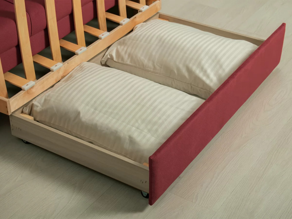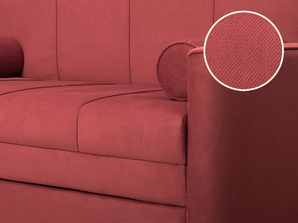 Габаритысложенный (Д x Г х В, мм): 1450 x 800 x 840разложенный (Д x Г х В, мм): 1450 x 2000 x 770спальное место (Д x Ш, мм): 1950 x 1200высота посадки (мм): 460глубина сиденья (мм): 650высота спинки (мм): 450высота подлокотника от сиденья (мм): 120максимально допустимая нагрузка: 80 кгМеханизм трансформацииВыкатной с гнутоклееными латамиБельевой ящикестьодно отделениеразмер отделения (Д x Ш, мм):  1100 x 628 x 100Варианты исполнения6 артикуловсочетание тканей только как на фотоМатериалыосновная ткань: Киви (велюр) / Макс (велюр)выполняется в тканях: Киви 67 велюр (ягодный)каркас: