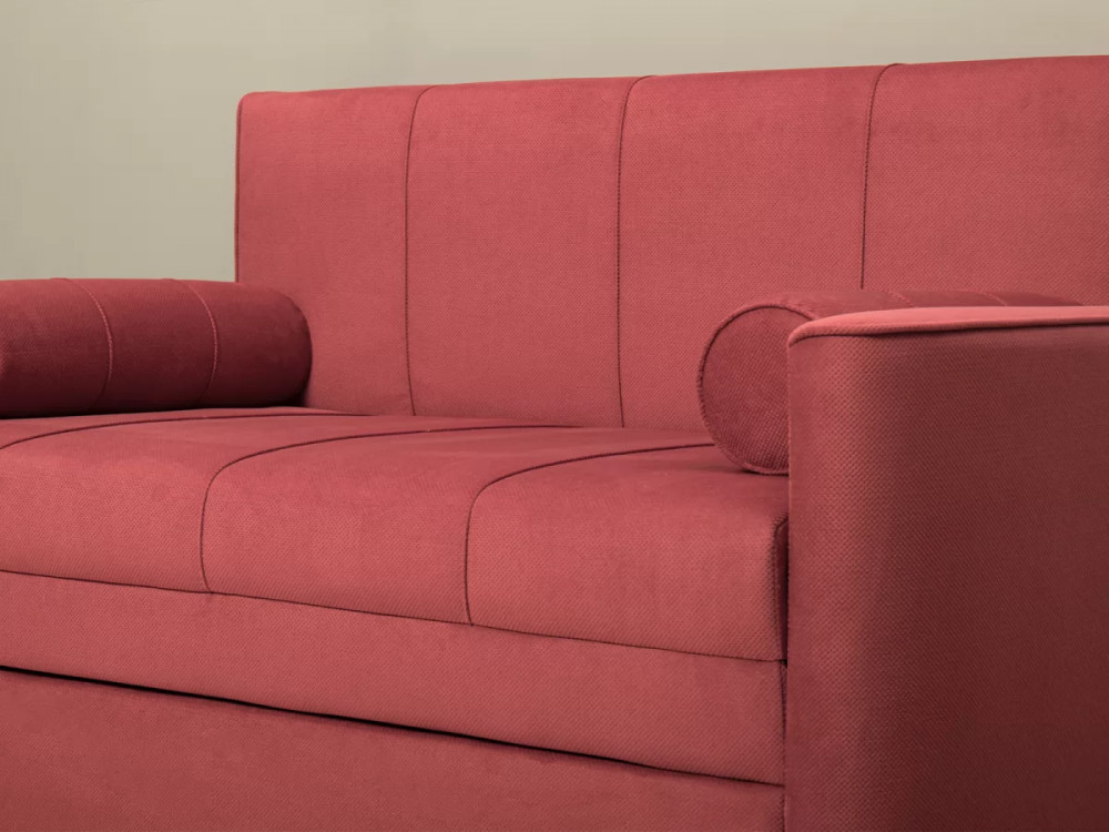 ППУ на основании из гнутоклееных латдекоративные подушки, шт: 2наполнитель подушек: полиэфирное волокно «шарики»материал опор: пластикцвет опор: черныйвысота опор (мм): 25ДекорНа фронтальной части спинки дивана прострочены защипы (3 шт.). По торцам втачен кант. На декоративных валиках прострочены защипы -2 шт. и защип вдоль круглого торца. Сидение имеет 3 защипа. Верхний торец подлокотников полукруглый, на ребре полукруга втачен кант.Назначениев молодежную