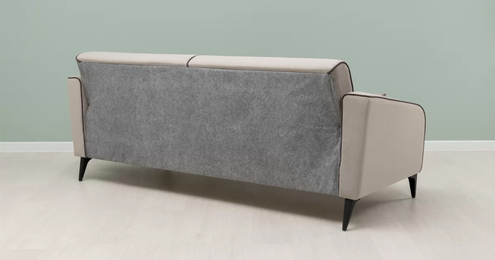 ДВПдекоративные подушки, шт: -2наполнитель подушек: -крошка ППУ и полиэфирное волокно «шарики»материал опор: металлцвет опор: черныйвысота опор (мм): 165ДекорСпинка и сиденье разделяются пополам двойным кантом по центру и одинарным по краям сидения, для придания одной единой формы. Подлокотники с изгибом на лицевой стороне и мягкими закругленным углом со складками, с выраженным контрастным ровным кантом по внешнему контуру изделия и изогнутой линией канта.Назначениев гостиную