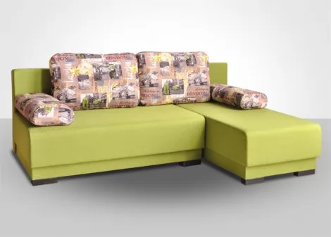 "Комбо 1 МДУ" - угловой диван в современном стиле с валиками вместо подлокотников и с мягкими подспинными подушками. Основание дивана и подушки могут быть выполнены в контрастных цветах. Диван раскладывается в двуспальную кровать, механизм трансформации "Еврокнижка".