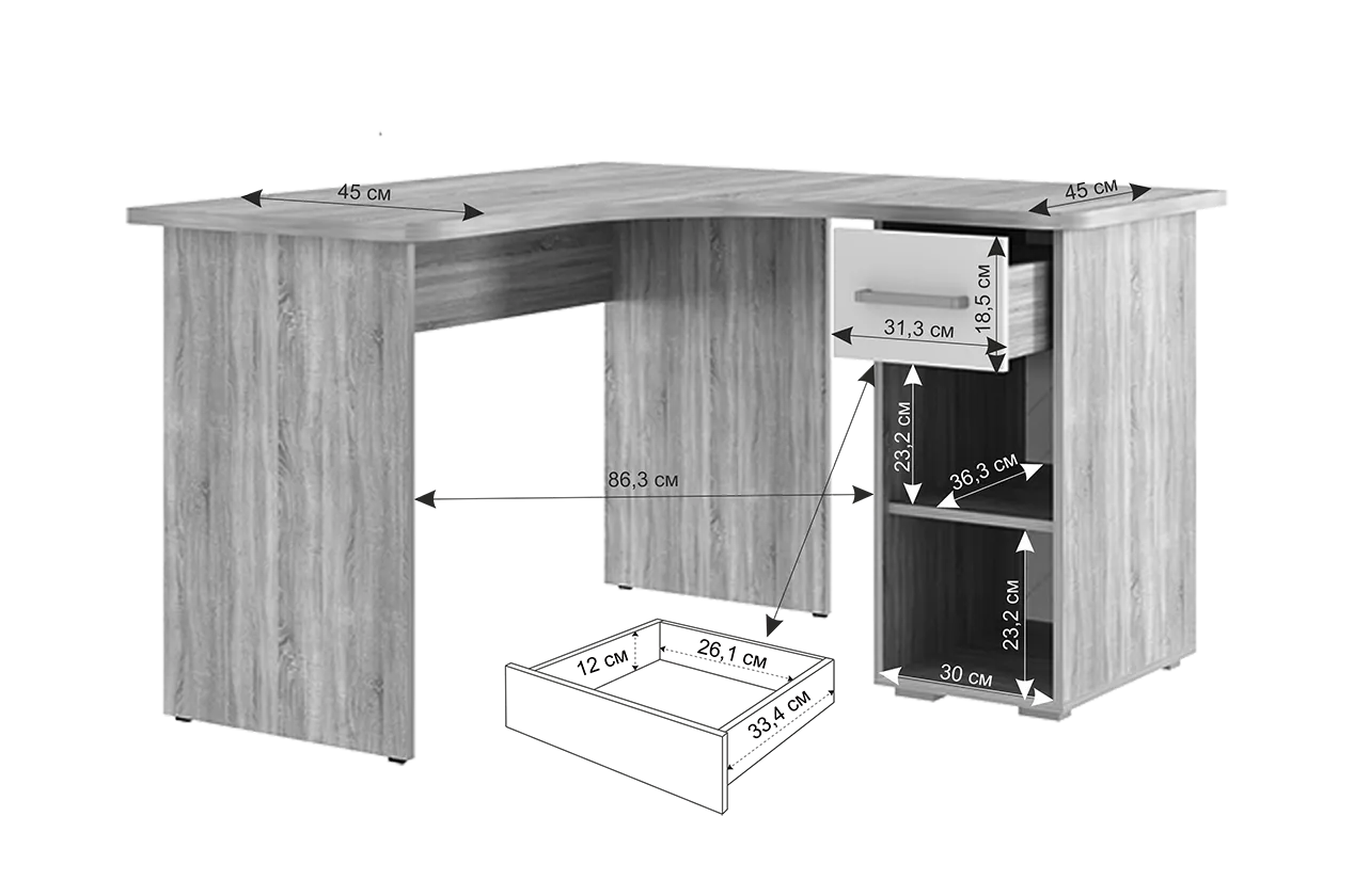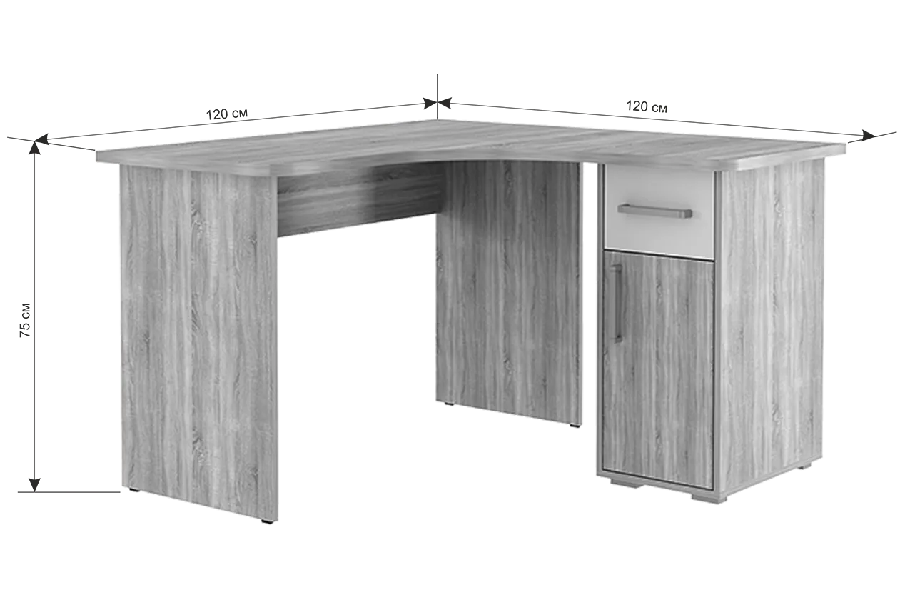 Стол компьютерный 1200 угловой Лайт-1 дуб сонома/белый в Пангоды