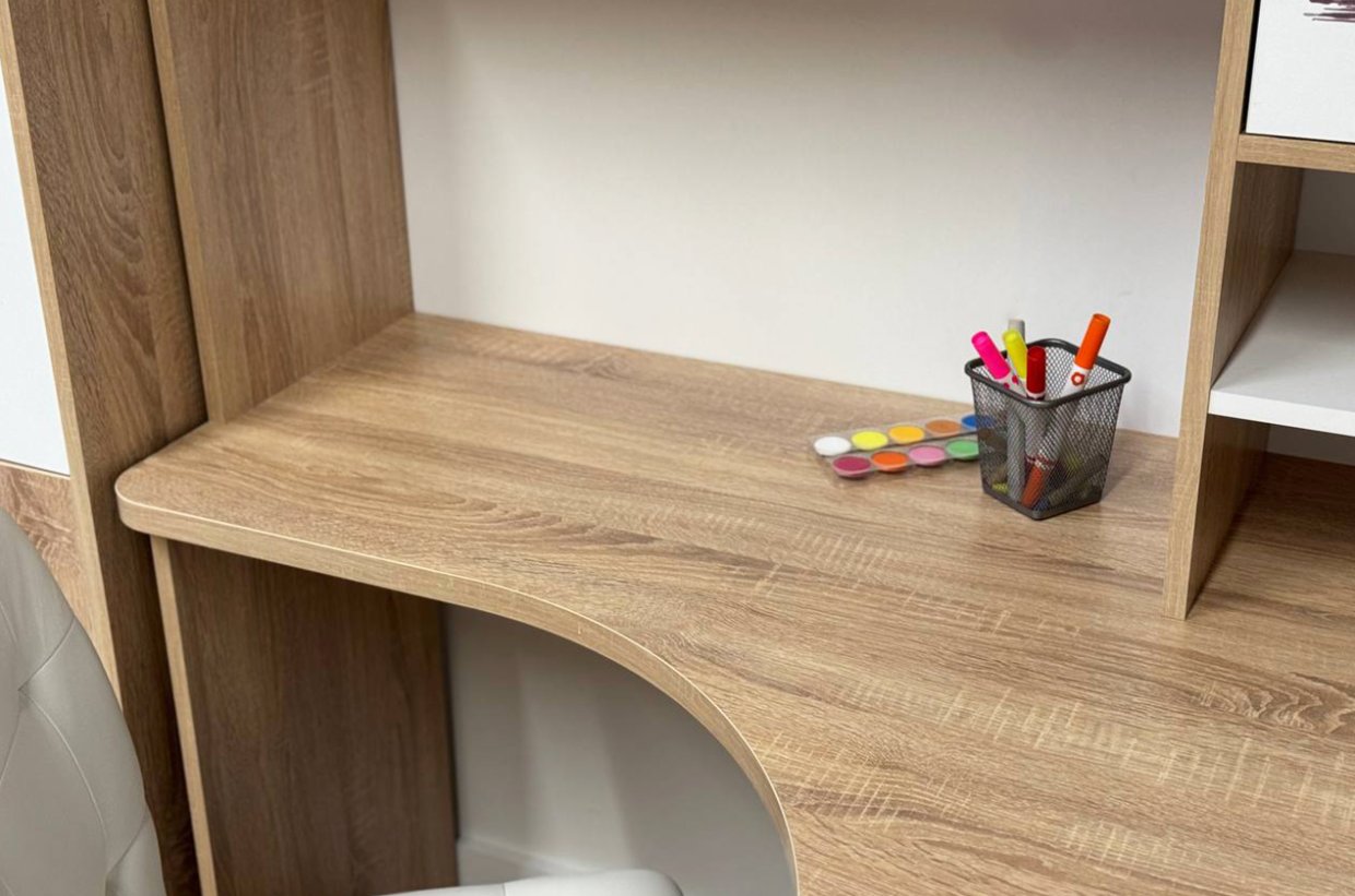 Угловой компьютерный стол «Лайт» поможет организовать рабочее пространство в комнате школьника или подростка, он удобно устанавливается в угол комнаты и не загромождает пространство, несмотря на свои габариты. У компьютерного углового стола «Лайт» в {{in_city}} большая рабочая поверхность: на нем можно легко расположит даже большой монитор, предусмотрено место для клавиатуры, системный блок удобно размещается снизу. Также в модели имеется тумба и выдвижной ящик, где удобно хранить учебные и канцелярские принадлежности, книги. Стол может компоноваться другой мебелью из линейки «Лайт».