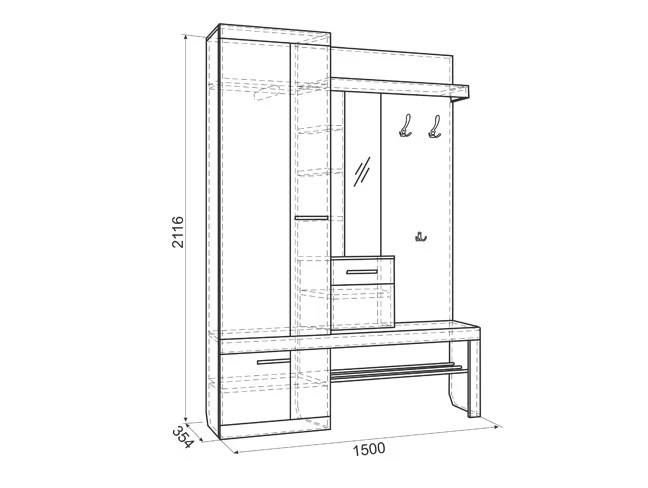 *Размеры (Ш*Г*В), мм:ш=1500 мм*г=354 мм*в=2116 мм