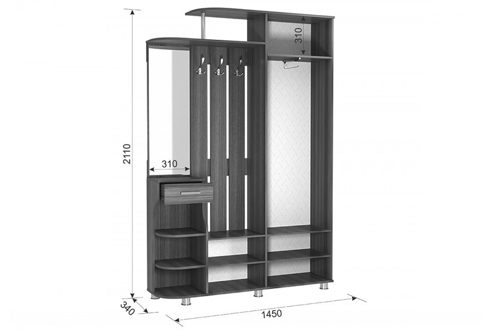 *Размеры (Ш*Г*В), мм:1450х340х2110