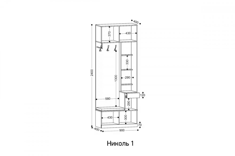 Размеры Ширина - 900 мм Глубина - 400 мм Высота - 2400 мм Вес: 74.6 кг Объём: 0.124 м3 Размеры упаковок 1984*684*32 902*438*80 896*396*120 1058*296*20 ЛДСП 16 мм Кромка ПВХ 1 мм Шариковые направляющие Петли с доводчиками Ручки металл: черные матовые или сатиновое золото