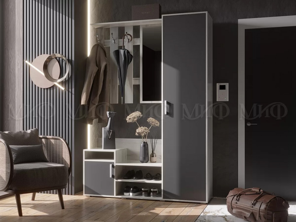 Прихожая Визит Графит/Дуб Крафт Белый в Пангоды