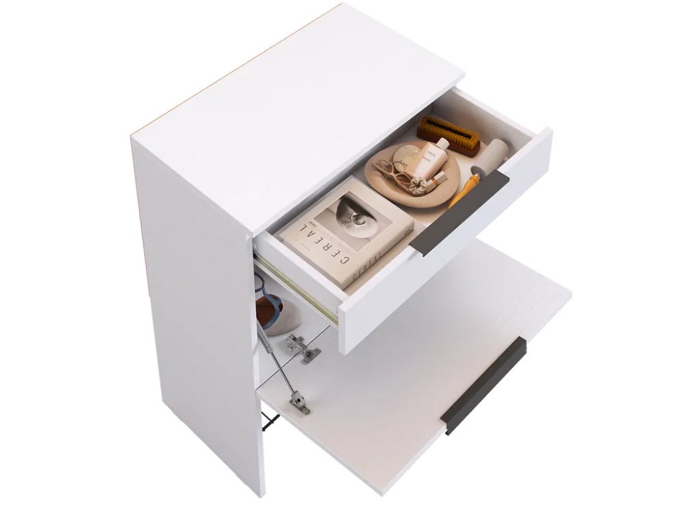 Изготовленная из прочного ЛДСП толщиной 16 мм, обувница обеспечивает надежность и долговечность. Выкатной ящик на шариковых направляющих позволяет легко и плавно открывать и закрывать его, предоставляя дополнительное место для хранения мелочей.