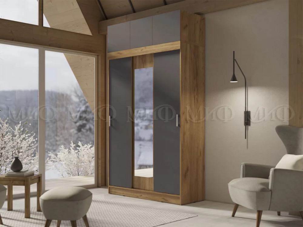 Шкаф с антресолью Басямиф, графит/дуб крафт в Пангоды