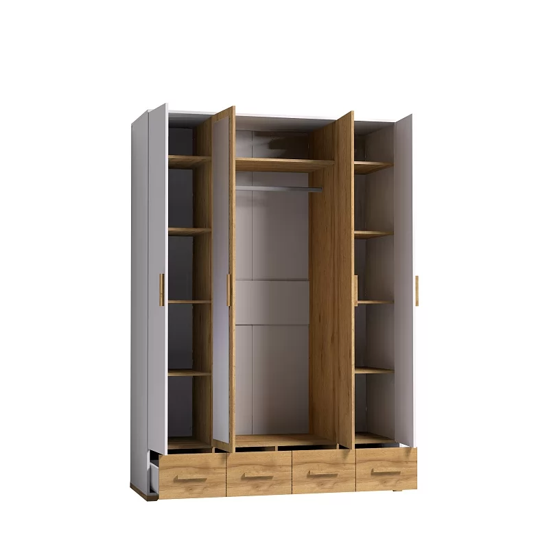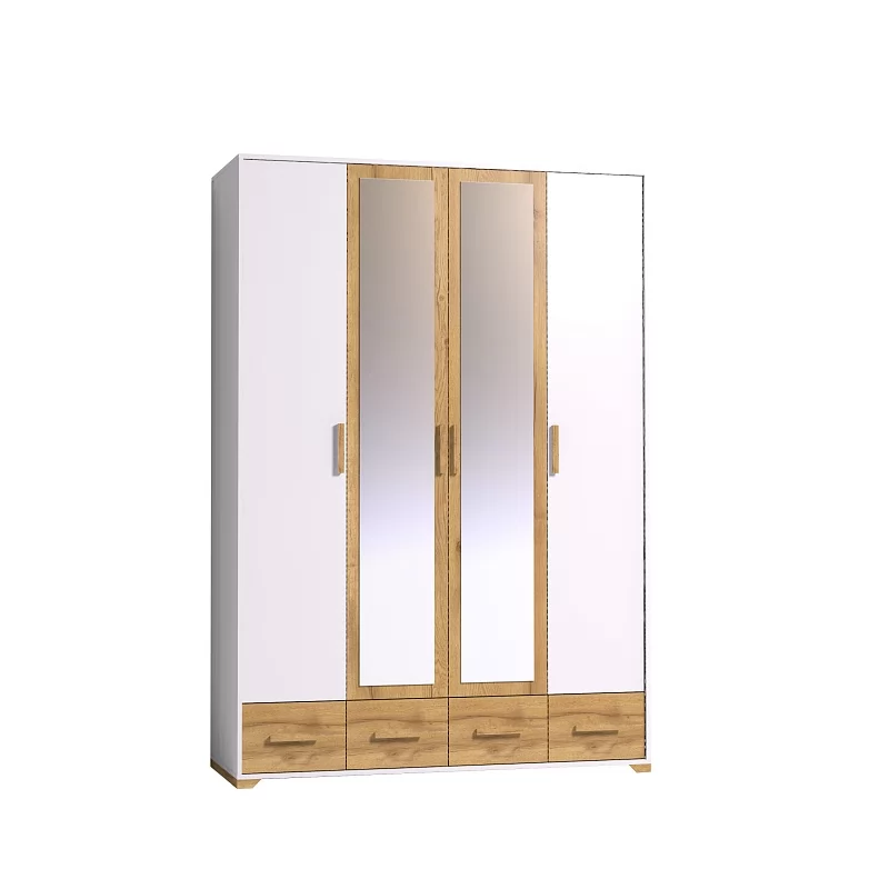 Четырехдверный шкаф для одежды и белья Айрис 555 с зеркалами и выдвижными ящиками - настоящая находка для большой и маленькой квартиры. Шкаф оснащен отделениями для хранения белья с полками на скрытых полкодержателях и отделением для одежды со стационарной штангой длиной 749 мм. Штанга выдерживает нагрузку до 40 кг. 4 выдвижных ящика комплектуются шариковыми направляющими. Такой шкаф с ящиками сможет заменить полноценный комод в маленькой спальне. Петли с доводчиками для бесшумного закрывания дверок шкафа.
