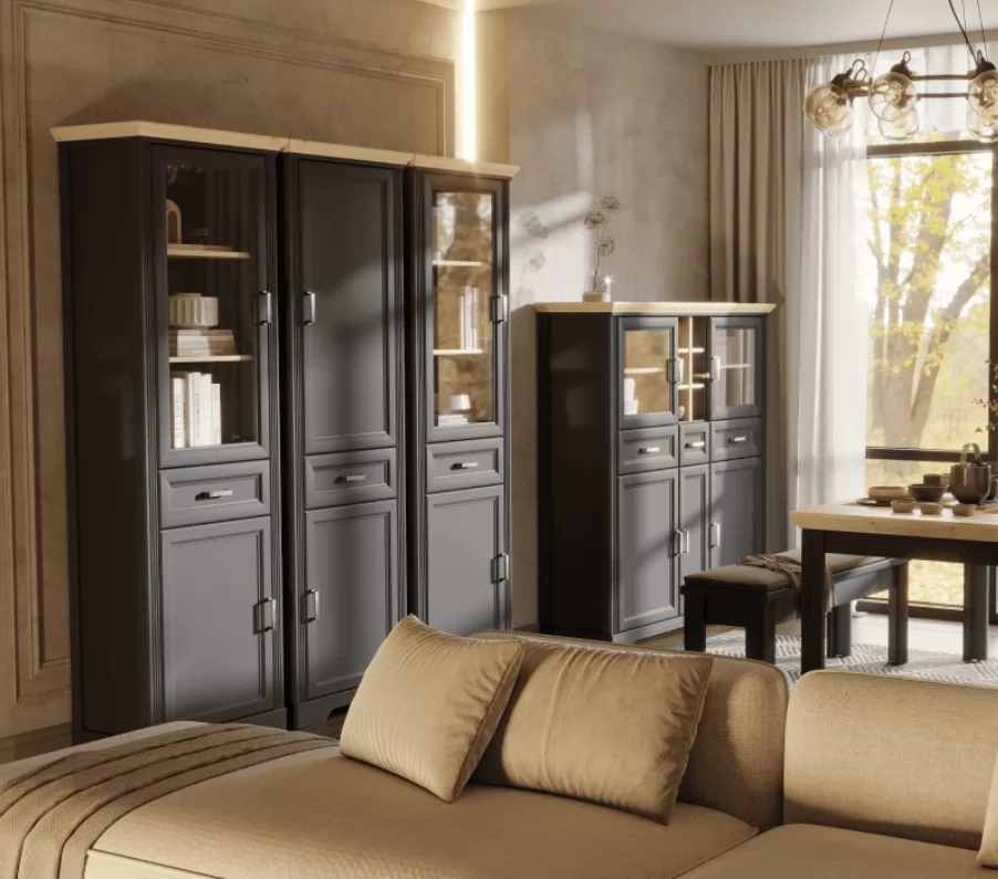 Акцентный карниз подчеркивает неоклассический стиль. Благодаря своей компактности и вместительности распашной шкаф отлично впишется в небольшие комнаты.