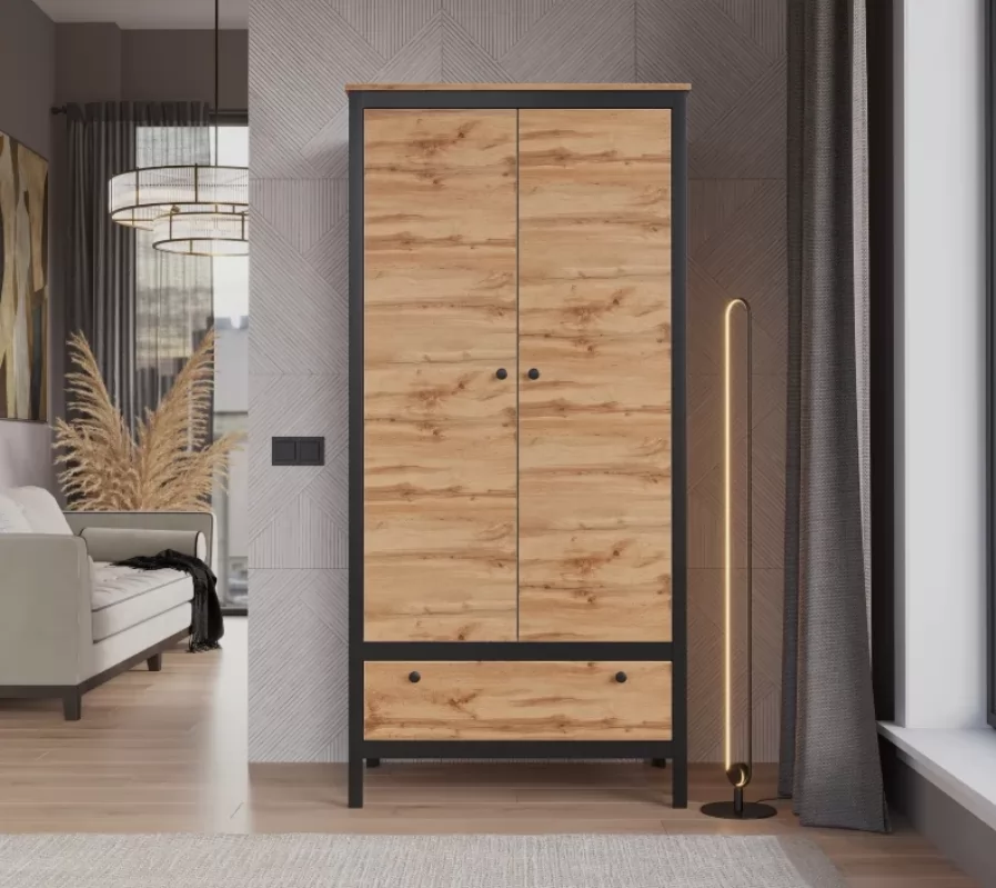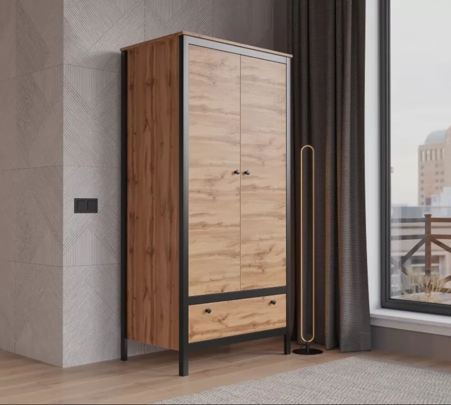 LOFT шкаф SZF2D1S (Дуб вотан/Черный) в Пангоды