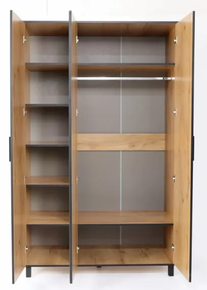 Ширина (мм): 1300 Высота (мм): 2100 Глубина (мм): 550 Цвет: Дуб крафт золотой/Черный Материал: ЛДСП/Зеркало Вес, кг: 119 Объем, м3: 0.2 Корпус — ЛДСП 16 мм Кромка ПВХ 0.4 мм Кромка ПВХ 2 мм Зеркало с фацетом Ручки — черный пластик Дверцы с доводчиком Опоры — черный металл (ФМС) Размер зеркала: 1950х410 мм Возможно исполнение с разными типами опор