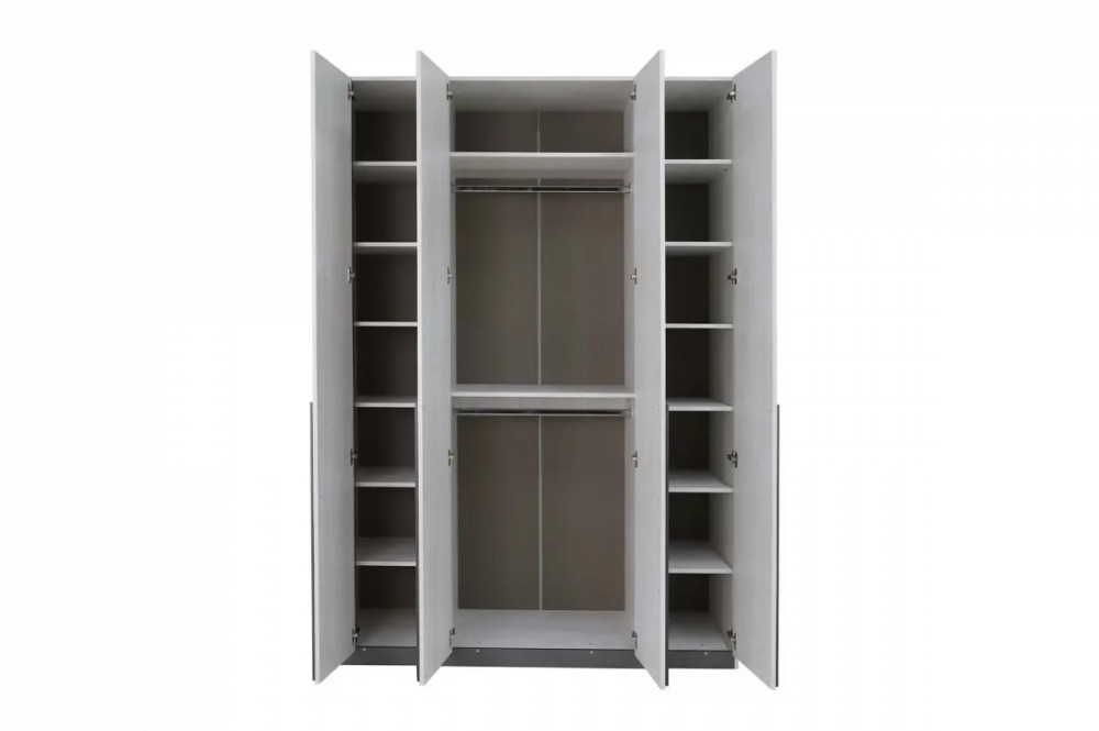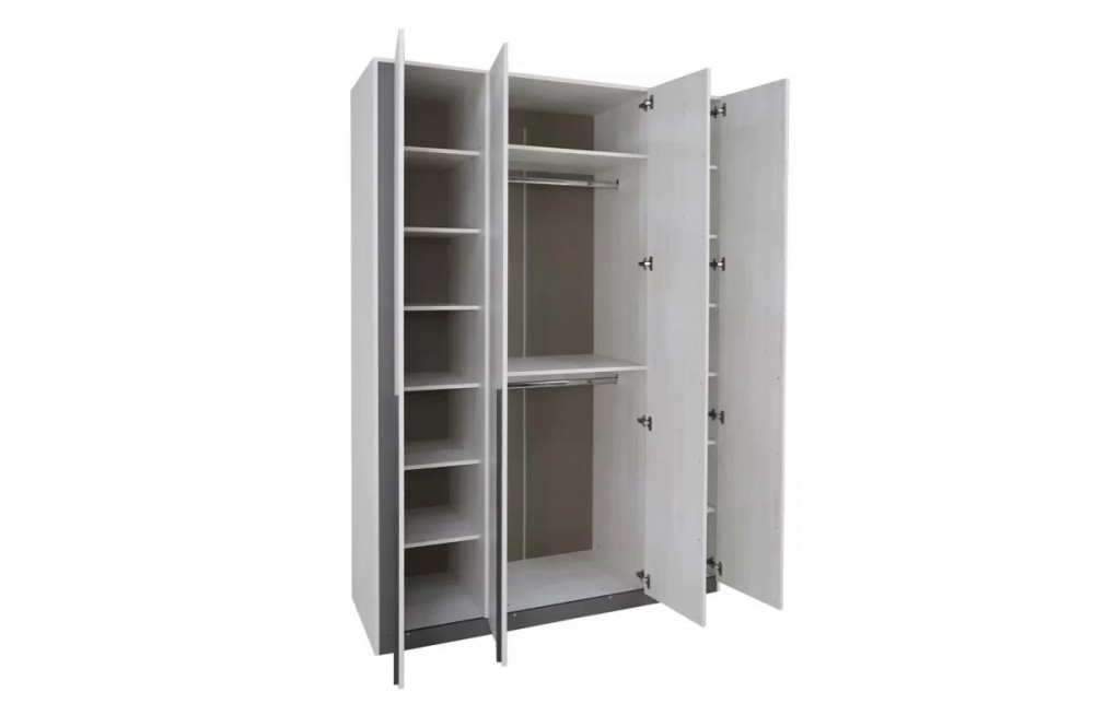 Практичный в использовании 4-х створчатый шкаф, отлично подойдет для спальни. ЛДСП с текстурой дерева будет актуально еще долги годы, а светлый цвет освежит комнату.