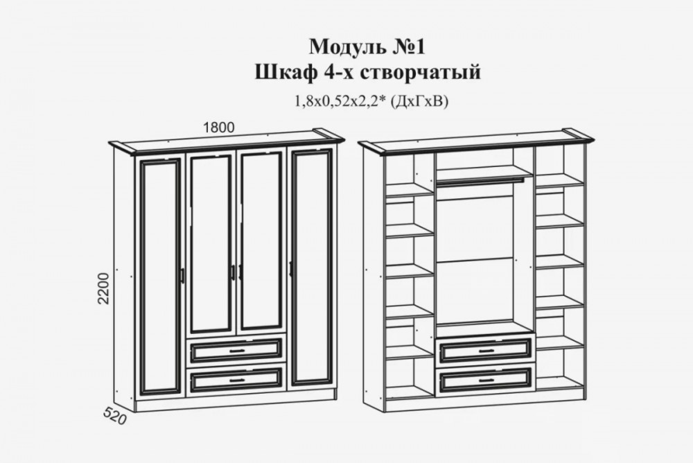 *Размеры (Ш*Г*В), мм:1800х520х2200