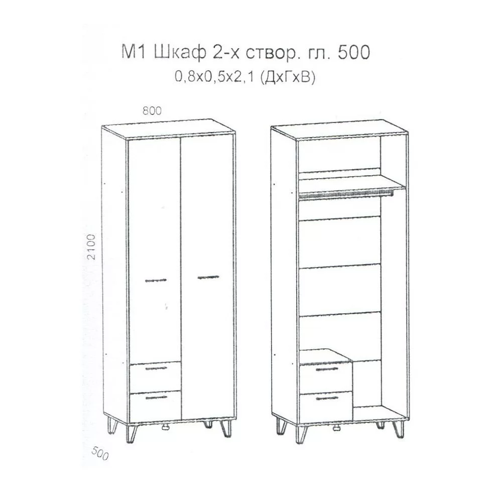 800х500х2100 мм