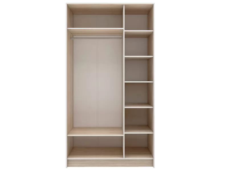 Характеристики: Ширина: 1200 мм Глубина : 590 мм Высота : 2240 мм Материал корпус : КДСП 16 мм Дуб сонома Фасад : ЛДСП 16 мм Дуб сонома/Белый Ручки - пластик. Вместительный многофункциональный шкаф для одежды и белья. Шкаф оснащён продольной металлической штангой и полками из ЛДСП.