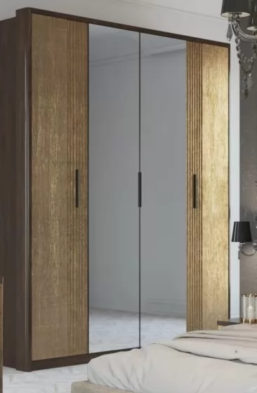 Фасады шкафов декорированы зеркалами с обработкой фацет. Высота шкафов составляет 2330 мм, а полезная глубина 568 мм. Шкафы изготовлены из материала ЛДСП 16 мм, задняя стенка из ХДФ. Фасады представлены как в однотонном так и в комбинированном варианте: створки из МДФ 16 мм под пленкой ПВХ.