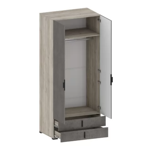 В модульной гостиной серии Шер представлены шкафы высотой 2150 и глубиной 588 мм. Вся мебель изготовлена из высококачественного материала ЛДСП — 16 мм, класса эмиссии Е1. Фасады с оригинальной фрезеровкой изготовлены из МДФ 16 мм под пленкой ПВХ.