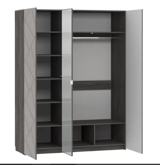С комбинированным шкафом Summit НМ 011.44 в спальне не придется устанавливать дополнительную мебель для хранения одежды. В левой части модуля находится секция с пятью полками для белья. Правую часть шкафа занимает отделение с овальной штангой, которая способна выдержать много тяжелой верхней одежды. Антресольная полка подходит для хранения объемных вещей, а нижняя полка – для размещения коробок с обувью. Зеркальный фасад расширяет функционал шкафа и увеличивает пространство комнаты.