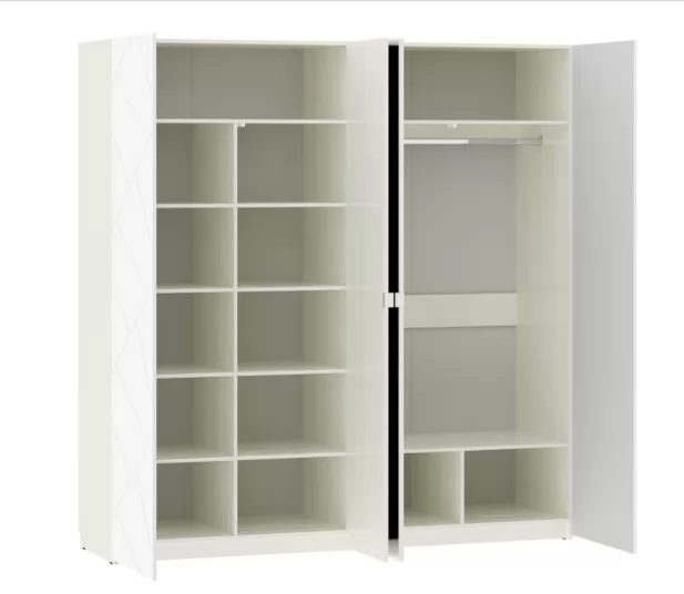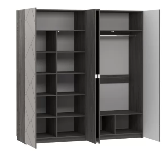 Четырехстворчатый шкаф Summit НМ 011.48 станет достойной альтернативой гардеробной комнате, сэкономит пространство и задаст стиль интерьеру спальни. Внутри модуль разделен на две равные секции. В левой части шкафа находится секция из восьми полок для хранения одежды в сложенном виде. В правой половине модуля установлена штанга для одежды на вешалках плечиках. Зеркальные фасады добавят свет и визуально расширят комнату.